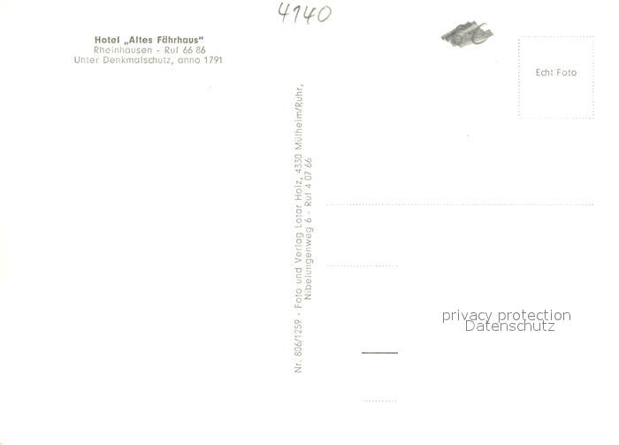 73702591 Rheinhausen Duisburg Hotel Altes Faehrhaus Innen und Aussen postalisch nicht gelaufen Erhaltung siehe scans [LiesaD40] KatCode: 11110005112000