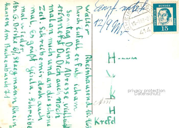 73596203 alte Postkarte Rheinhausen Duisburg Huettenwerk Rheinbruecke Kruppbrunnen Hauptgeschaeftsstrasse Stadtpark postalisch gelaufen Erhaltung siehe scans [FriedD77] KatCode: 11110005112000