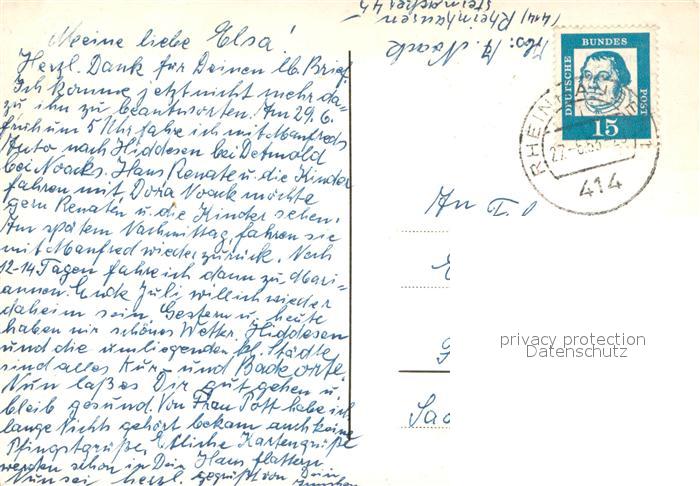 73673250 alte Postkarte Rheinhausen Duisburg Huettenwerk Rheinbruecke Kruppbrunnen Hauptgeschaeftsstrasse Innenstadt Stadtpark postalisch gelaufen Erhaltung siehe scans [FriedD77] KatCode: 11110005112000