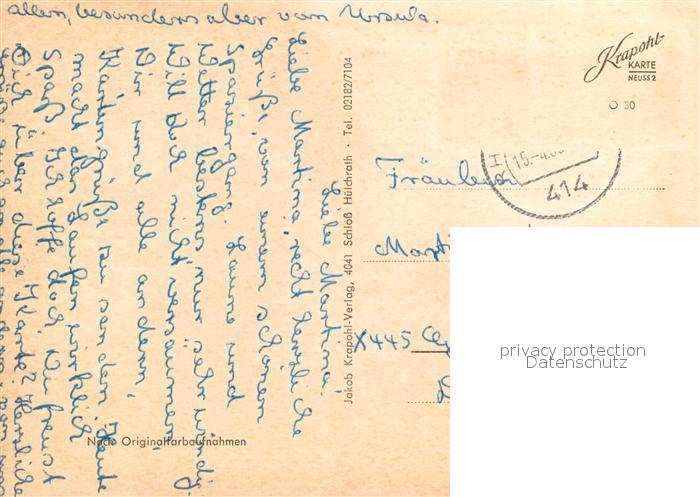73673244 alte Postkarte Rheinhausen Duisburg Parkanlagen Rheinbruecke Binnenschifffahrt Wohnsiedlung Wappen postalisch gelaufen Erhaltung siehe scans [FriedD77] KatCode: 11110005112000
