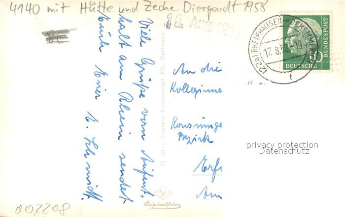 73701910 alte Postkarte Rheinhausen Duisburg Rheinbruecke Zeche-Diergardt Huettenwerk postalisch gelaufen Erhaltung siehe scans [LiesaD40] KatCode: 11110005112000