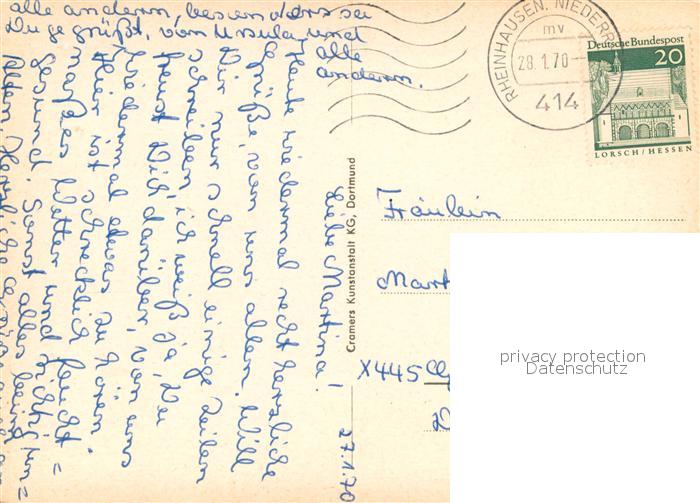 73673248 alte Postkarte Rheinhausen Duisburg Strassenpartien Stadtpark Jugendheim Hallenbad Krankenhaus Rheinbruecke Strandbad Kruppsee postalisch gelaufen Erhaltung siehe scans [FriedD77] KatCode: 11110005112000