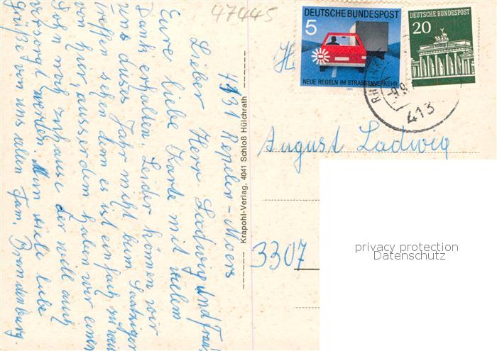 73854061 Rheinkamp Repelen Moers Moers Kath Kirche Markt Ev Kirche Schacht VI Jungbornpark An der Post postalisch gelaufen Erhaltung siehe scans [WerneD78] alte Postkarte Wern Katcode 11110005170024