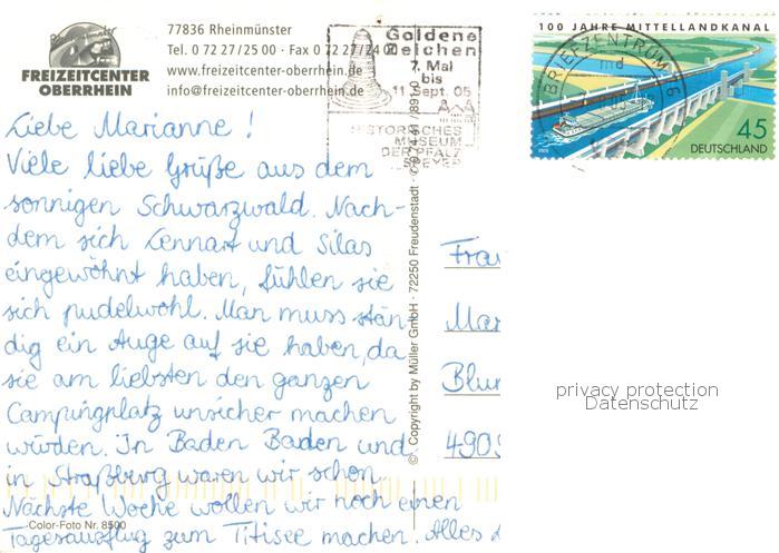 73779340 alte Postkarte Rheinmuenster Freizeitcenter Oberrhein Fliegeraufnahme postalisch gelaufen Erhaltung siehe scans [WerneD78] KatCode: 11110008216063