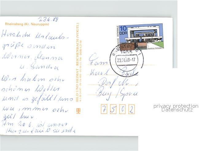 71900541 alte Postkarte Rheinsberg postalisch gelaufen Erhaltung siehe scans KatCode: 11110012068353