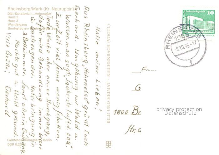 72974144 alte Postkarte Rheinsberg Diaet-Sanatorium Hohenelse postalisch gelaufen Erhaltung siehe scans [PaolaD17] KatCode: 11110012068353
