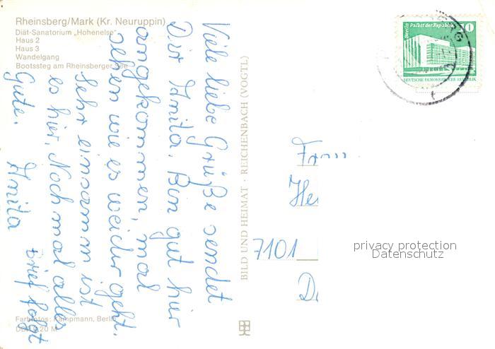 72974141 alte Postkarte Rheinsberg Diaet-Sanatorium Hohenelse postalisch gelaufen Erhaltung siehe scans [PaolaD17] KatCode: 11110012068353