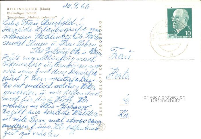 72377110 alte Postkarte Rheinsberg Ehemaliges Schloss Sanatorium Helmut Lehmann postalisch gelaufen Erhaltung siehe scans KatCode: 11110012068353