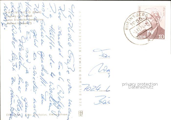 72327181 alte Postkarte Rheinsberg Eingang Schloss postalisch gelaufen Erhaltung siehe scans KatCode: 11110012068353
