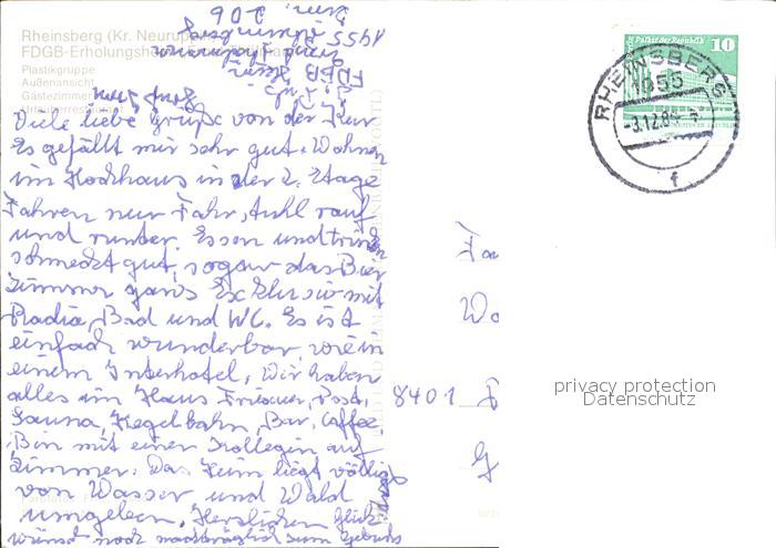 72373193 alte Postkarte Rheinsberg Erholungsheim Ernst-Thaelmann Plastikgruppe Gaestezimmer postalisch gelaufen Erhaltung siehe scans KatCode: 11110012068353