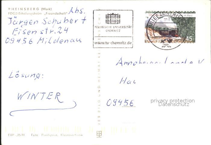72366480 alte Postkarte Rheinsberg Erholungsheim Freundschaft postalisch gelaufen Erhaltung siehe scans KatCode: 11110012068353