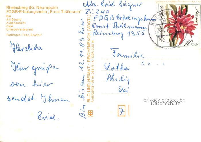 73544227 alte Postkarte Rheinsberg FDGB Erholungsheim Ernst Thaelmann Bar Cafe Restaurant Strand postalisch gelaufen Erhaltung siehe scans [FriedD77] KatCode: 11110012068353