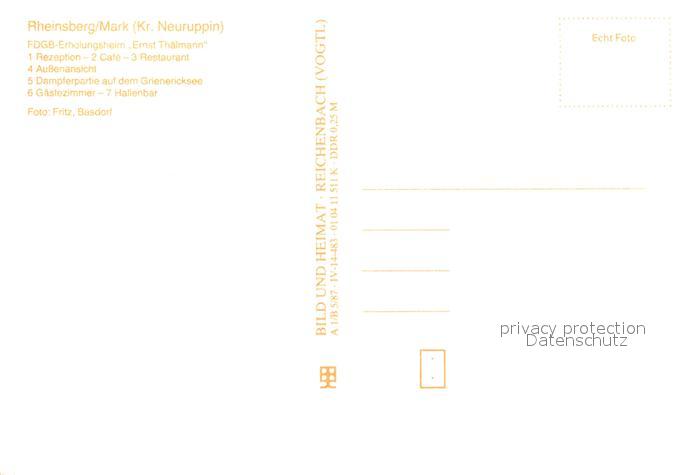 72963908 Rheinsberg FDGB Erholungsheim Ernst Thaelmann Dampfer Grienericksee postalisch nicht gelaufen Erhaltung siehe scans [FriedD77] KatCode: 11110012068353