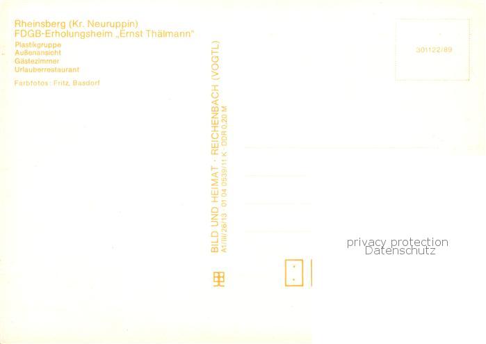 73830447 Rheinsberg FDGB Erholungsheim Ernst Thaelmann Plastik Aussenansicht Gaestezimmer Urlauberrestaurant postalisch nicht gelaufen Erhaltung siehe scans [WerneD78] KatCode: 11110012068353