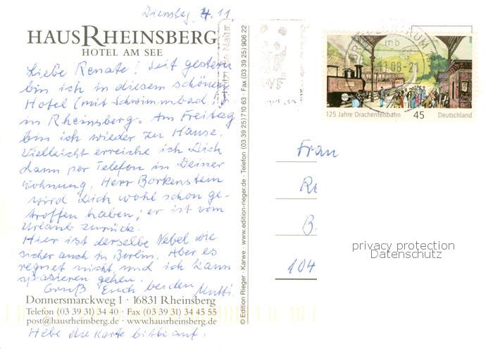 73758419 alte Postkarte Rheinsberg Haus Rheinsberg Hotel am See Teilansichten postalisch gelaufen Erhaltung siehe scans [LiesaD40] KatCode: 11110012068353