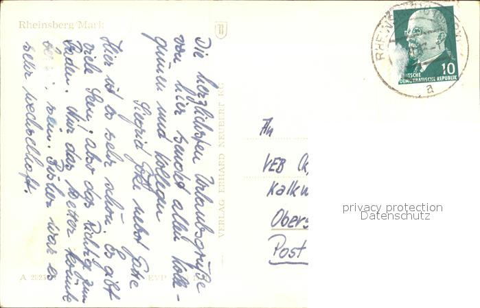72387992 alte Postkarte Rheinsberg Markt Partie am Wasser postalisch gelaufen Erhaltung siehe scans KatCode: 11110012068353