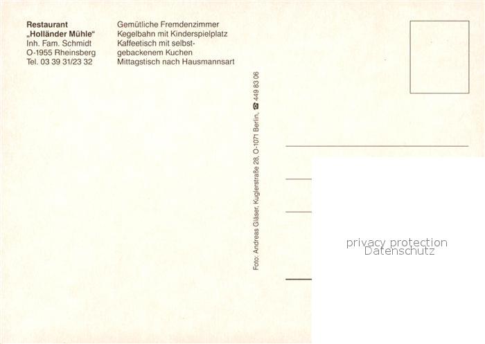 73084440 Rheinsberg Restaurant Hollaender Muehle postalisch nicht gelaufen Erhaltung siehe scans [FriedD77] KatCode: 11110012068353