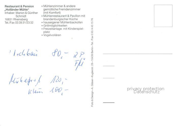 73659760 Rheinsberg Restaurant Pension Hollaender Muehle postalisch nicht gelaufen Erhaltung siehe scans [FriedD77] KatCode: 11110012068353