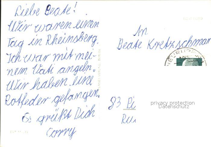 72359943 alte Postkarte Rheinsberg Sanatorium Helmut Lehmann Polytech Oberschule Strasse Am Markt postalisch gelaufen Erhaltung siehe scans KatCode: 11110012068353
