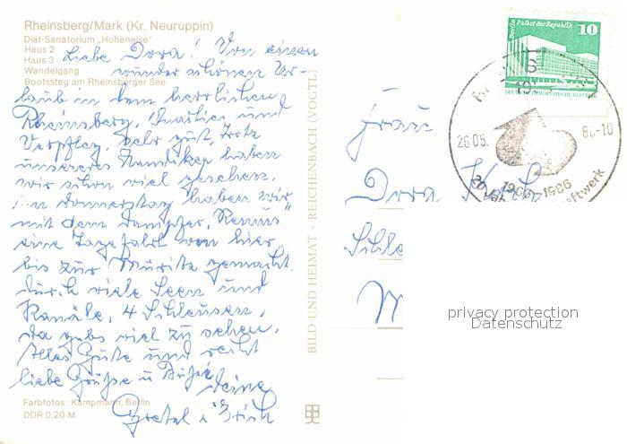 72826852 alte Postkarte Rheinsberg Sanatorium Hohenelse Bootssteg postalisch gelaufen Erhaltung siehe scans [NatalD47] KatCode: 11110012068353