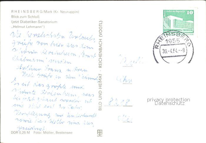 72366685 alte Postkarte Rheinsberg Schloss postalisch gelaufen Erhaltung siehe scans KatCode: 11110012068353
