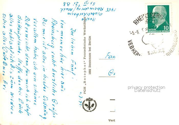 73099240 alte Postkarte Rheinsberg Schloss postalisch gelaufen Erhaltung siehe scans [KathaD81] KatCode: 11110012068353