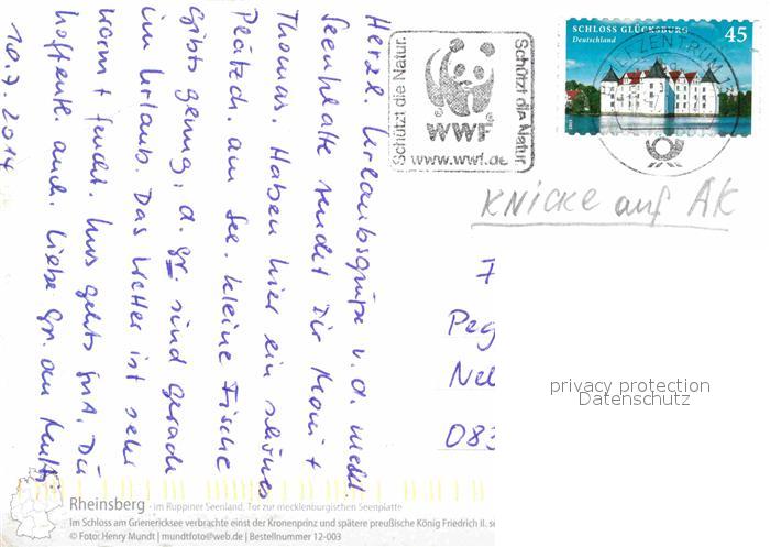 72780716 alte Postkarte Rheinsberg Schloss Grienericksee Ruppiner Seengebiet Fliegeraufnahme postalisch gelaufen Erhaltung siehe scans [FriedD77] KatCode: 11110012068353