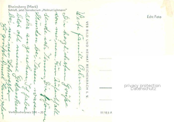 72703632 Rheinsberg Schloss jetzt Sanatorium Helmut Lehmann postalisch nicht gelaufen Erhaltung siehe scans [FriedD77] KatCode: 11110012068353