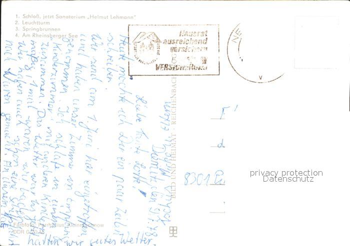 72610701 alte Postkarte Rheinsberg Schloss Leuchtturm Springbrunnen See postalisch gelaufen Erhaltung siehe scans [AndreD76] KatCode: 11110012068353