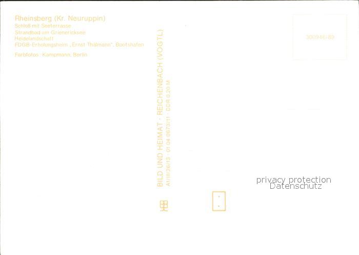 72322736 Rheinsberg Schloss mit Seeterrasse Strandbad Grienericksee Heidelandschaft Bootshafen postalisch nicht gelaufen Erhaltung siehe scans KatCode: 11110012068353