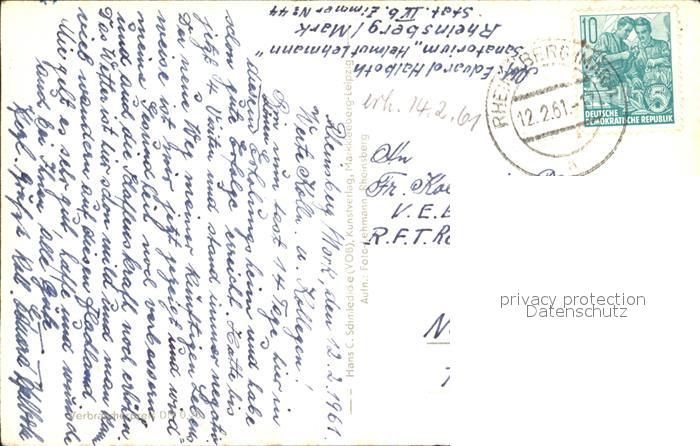 72355608 alte Postkarte Rheinsberg Schloss Muschelsaal Sanatorium Helmut Lehmann postalisch gelaufen Erhaltung siehe scans KatCode: 11110012068353