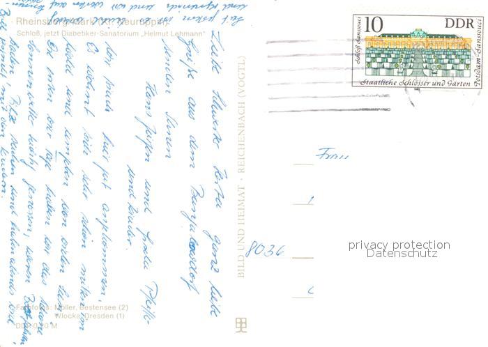 73157022 alte Postkarte Rheinsberg Schloss Sanatorium Helmut Lehmann postalisch gelaufen Erhaltung siehe scans [WerneD78] KatCode: 11110012068353