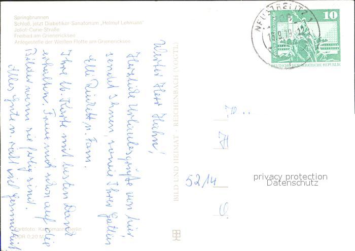 72279797 alte Postkarte Rheinsberg Springbrunnen Schloss jetzt Sanatorium Joliot Curie Strasse Freibad Grienericksee Anlegestelle Weisse Flotte postalisch gelaufen Erhaltung siehe scans KatCode: 11110012068353
