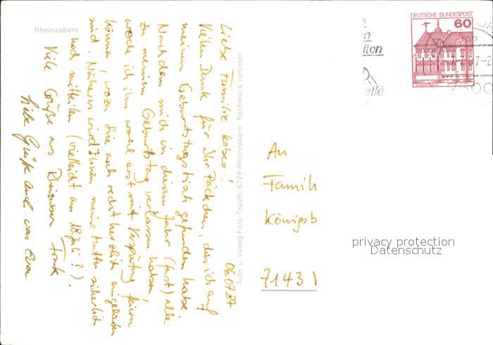 72116693 alte Postkarte Rheinzabern Hauptstrasse Gaststaette Kirchturm postalisch gelaufen Erhaltung siehe scans KatCode: 11110007334024