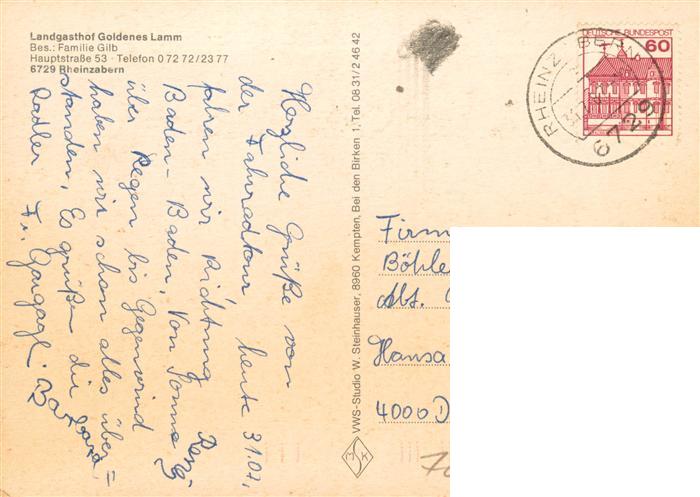 73896938 alte Postkarte Rheinzabern Landgasthof Goldenes Lamm Gastraeume postalisch gelaufen Erhaltung siehe scans [FriedD77] KatCode: 11110007334024