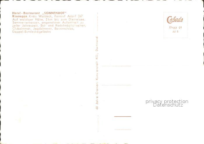 71933056 Rhenegge Hotel Restaurant Sonnenhof postalisch nicht gelaufen Erhaltung siehe scans KatCode: 11110006635007