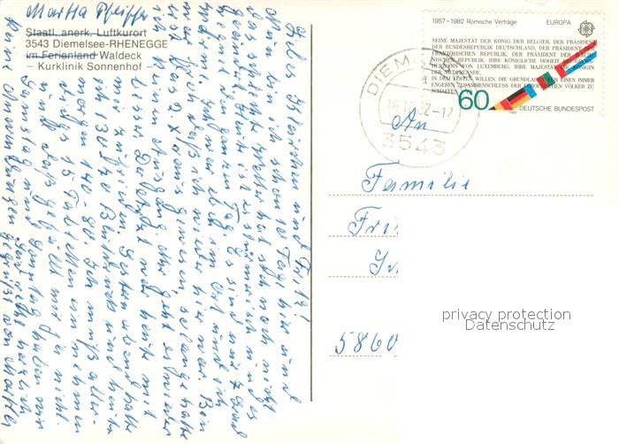 73723164 alte Postkarte Rhenegge Kurklinik Sonnenhof im Ferienland Waldeck postalisch gelaufen Erhaltung siehe scans [FriedD77] KatCode: 11110006635007