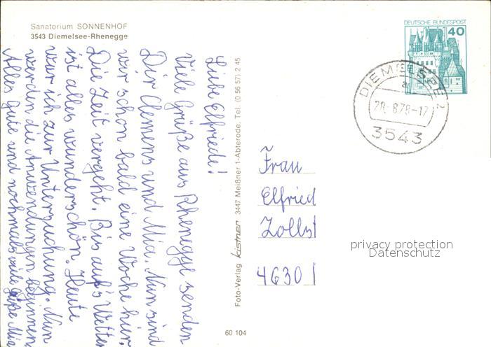 72113897 alte Postkarte Rhenegge Sanatorium Sonnenhof postalisch gelaufen Erhaltung siehe scans KatCode: 11110006635007
