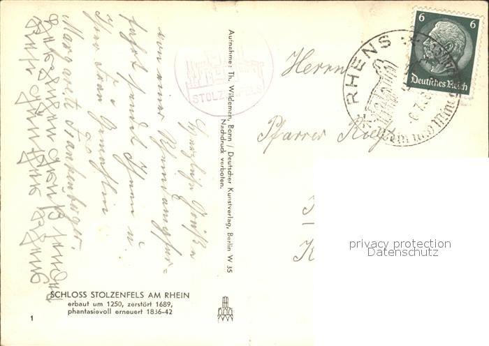 72186769 alte Postkarte Rhens mit Schloss Stolzenfels am Rhein postalisch gelaufen Erhaltung siehe scans KatCode: 11110007137221