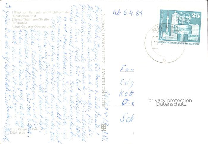 72339244 alte Postkarte Rhinow Fernseh Richtturm Deutschem Post Ernst-Thaelmann-Strasse Bahnhof postalisch gelaufen Erhaltung siehe scans KatCode: 11110012063260
