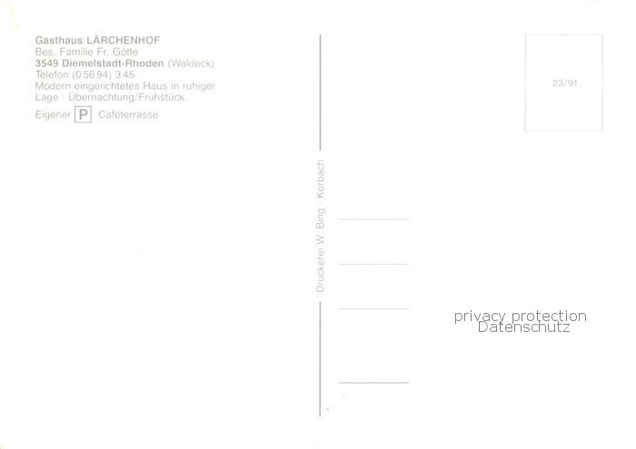 73796792 Rhoden Waldeck Gasthaus Laerchenhof postalisch nicht gelaufen Erhaltung siehe scans [WerneD78] KatCode: 11110006635008
