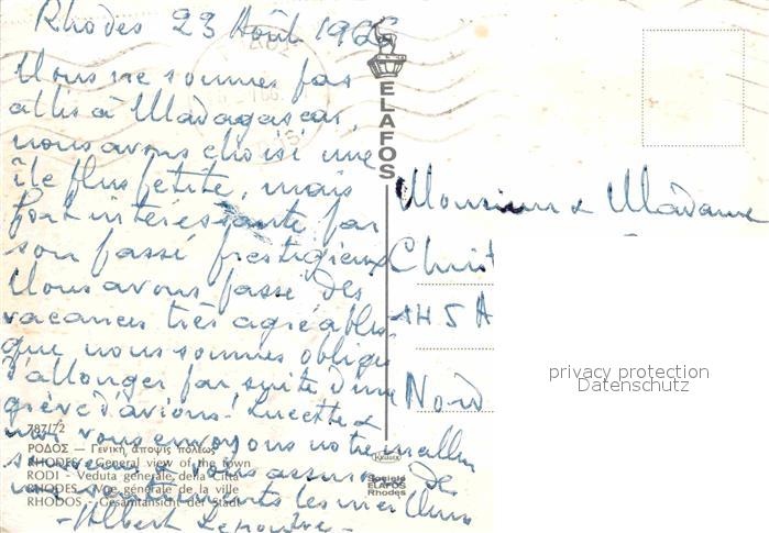 old postcard Rhodes Rhodos Greece Fliegeraufnahme postalisch gelaufen Erhaltung siehe scans [WerneD78]