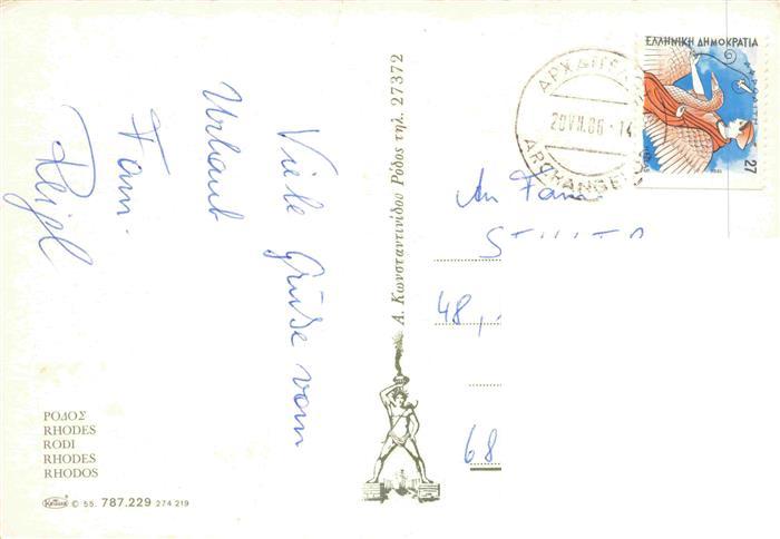 74142616 old postcard Rhodes RHODOS Greece Greetings postalisch gelaufen Erhaltung siehe scans [IrynaD87] KatCode: 11190