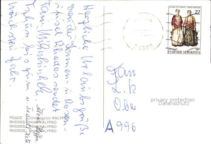 old postcard Rhodes Rhodos Greece Hotel Calypso postalisch gelaufen