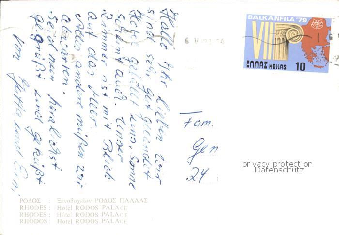 old postcard Rhodes Rhodos Greece Hotel Rodos Palast postalisch gelaufen Erhaltung siehe scans