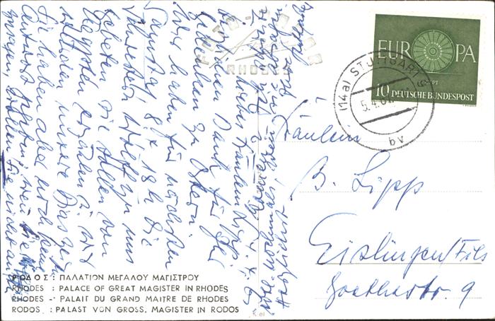old postcard Rhodes Rhodos Greece Palast postalisch gelaufen