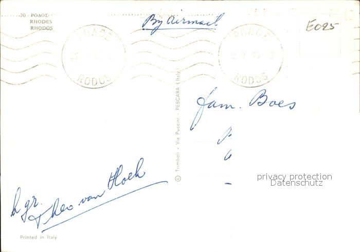 old postcard Rhodes Rhodos Greece Stadtansicht postalisch gelaufen Erhaltung siehe scans