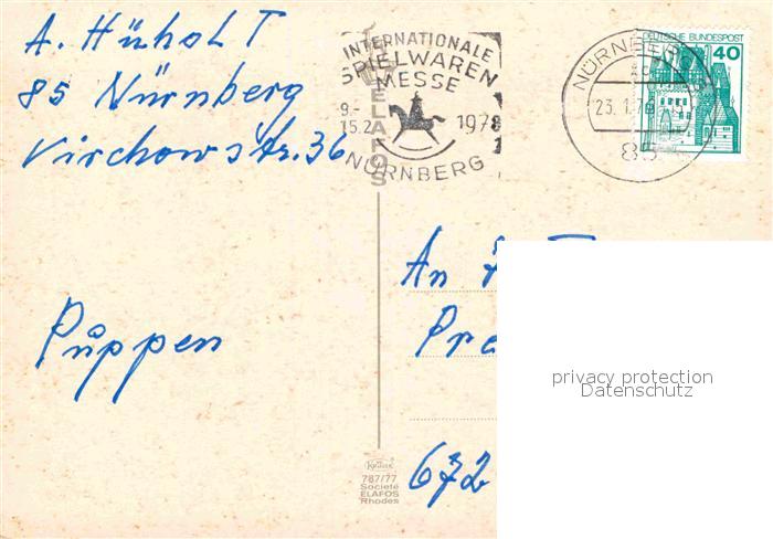 old postcard Rhodes Rhodos Greece Statue Hafen postalisch gelaufen Erhaltung siehe scans [NatalD47]