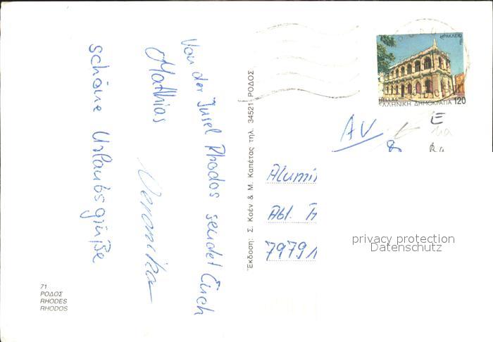old postcard Rhodos Rhodes aegaeis postalisch gelaufen
