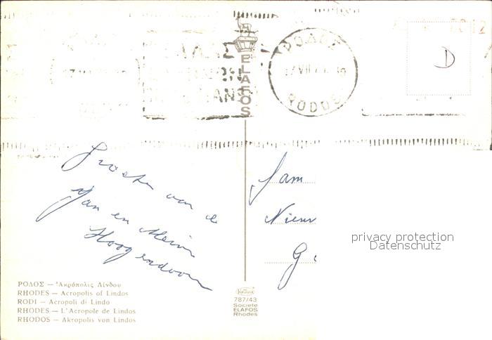 old postcard Rhodos Rhodes aegaeis Akropolis Lindos postalisch gelaufen